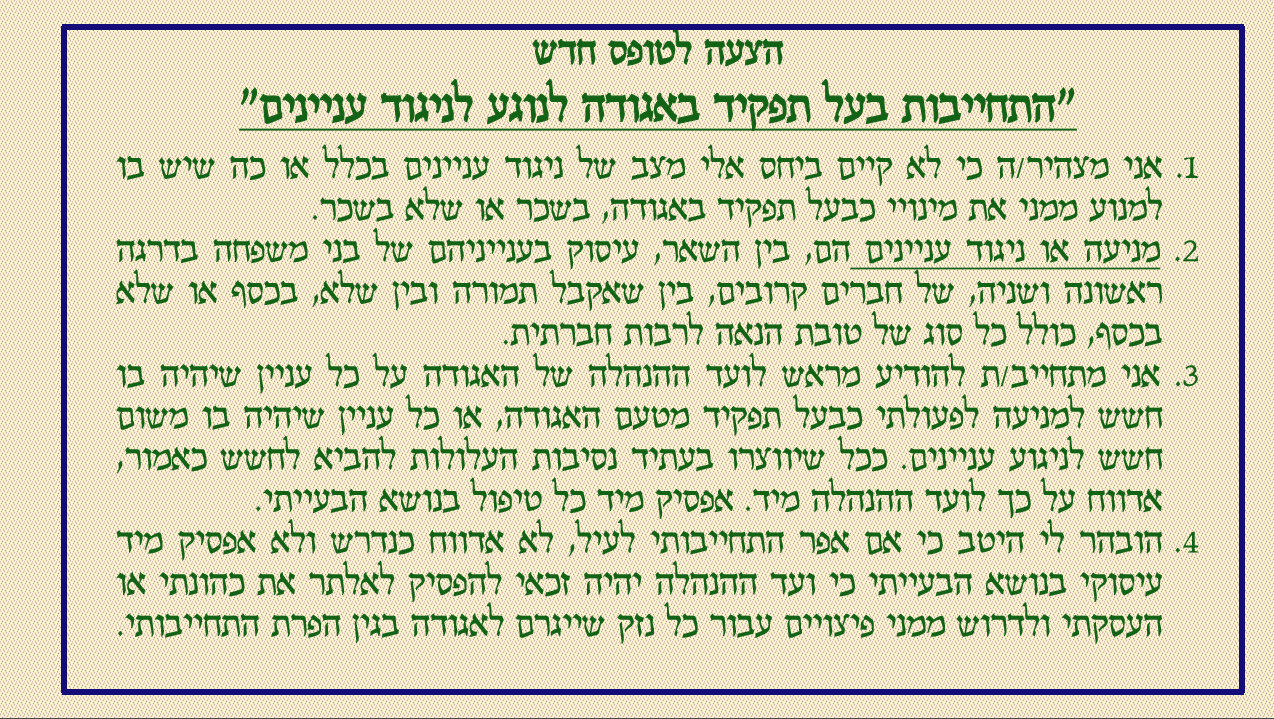 הרצאה - מניעת ניגוד עניינים בניהול תאגיד מסוג אגודה שיתופית