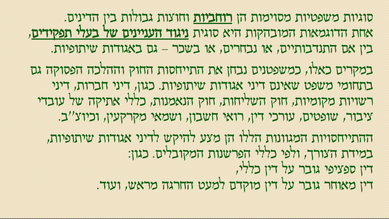 הרצאה - מבוא לדיני אגודות שיתופיות